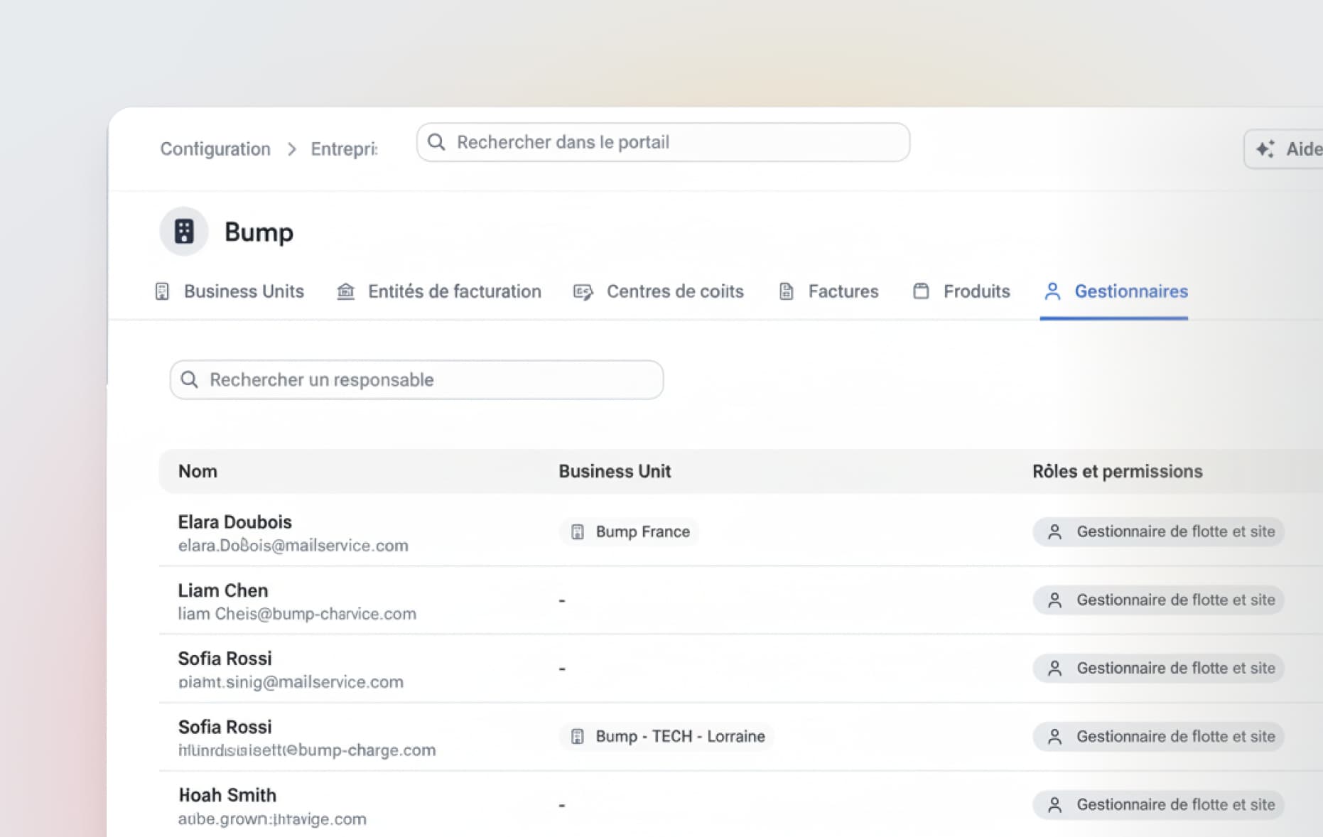 Ajouter, modifier ou révoquer des gestionnaires directement depuis le portail Bump en toute autonomie.